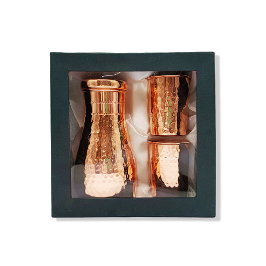 Casaveda® Pure Copper Drinkware Gift Set, Copper Pot – Hammered Design Water Copper Bottle (1 Litre) & 2 Glasses (300 ML) with Gift Box