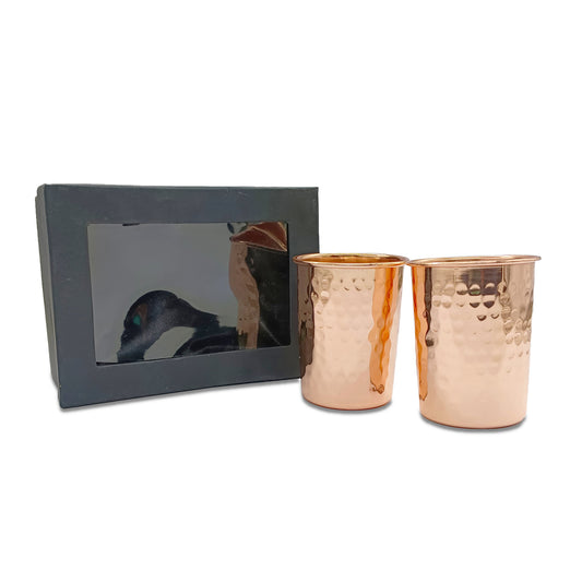 Casaveda® Pure Copper Hammered Glass – 300 ml Water Copper Glass Tumbler for Health Benefits, Elegant Drinkware, Set of 2