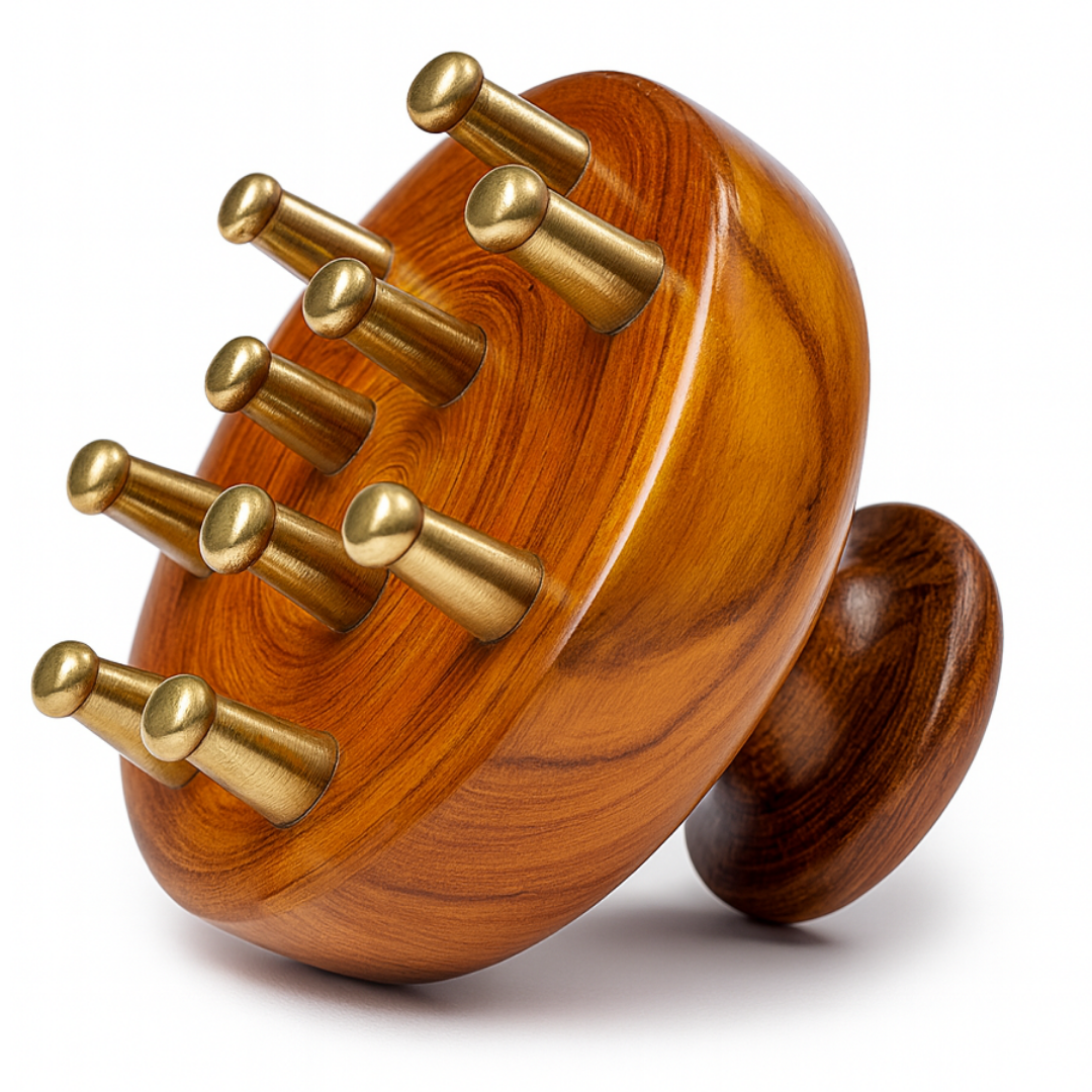 Casaveda® Kansa Scalp & Body Massager | Ayurvedic Teak Wood Massage Tool for Hair Growth, Stress Relief & Detox | Pure Kansa Stimulator