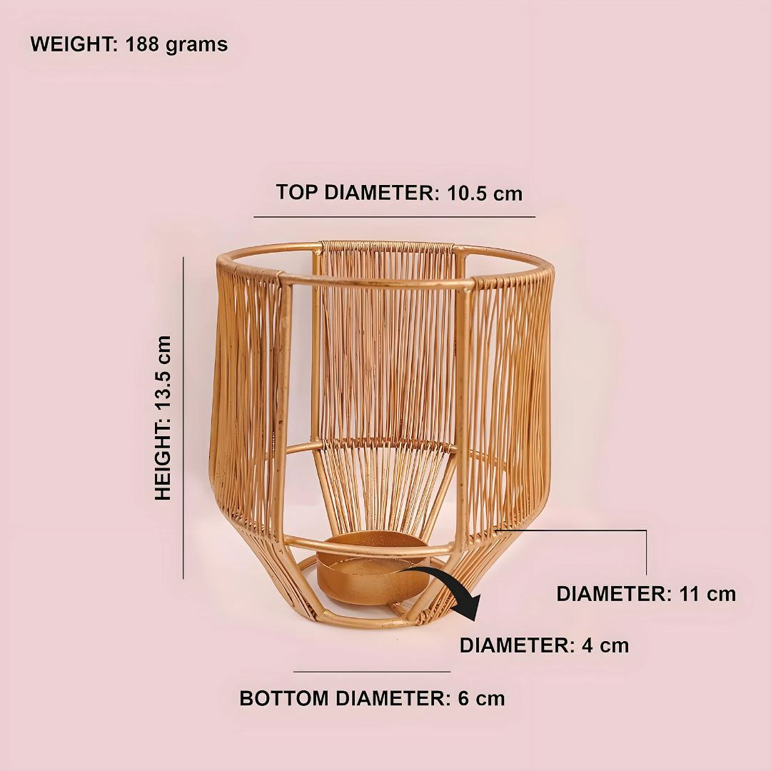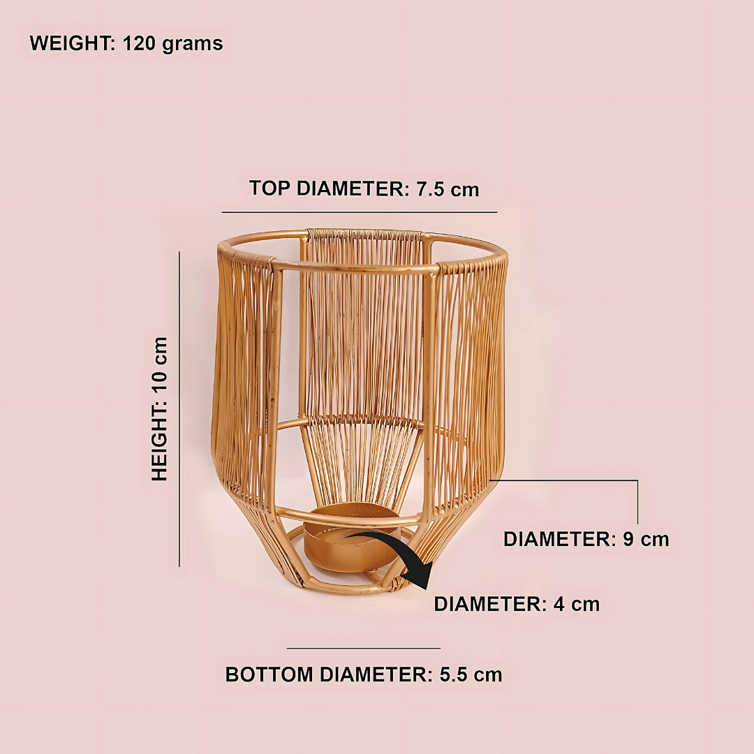 The golden metallic finish adds a touch of luxury, making these tealight holders versatile enough for festive celebrations like Diwali and Christmas, romantic dinners, weddings, or simply elevating your everyday décor. Handcrafted in India from durable iron with a rust-resistant finish, these holders are compatible with both wax candles and LED tealights for flexible use.